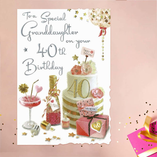 Granddaughter 40th Birthday Card - Velvet Cocktail & Cake