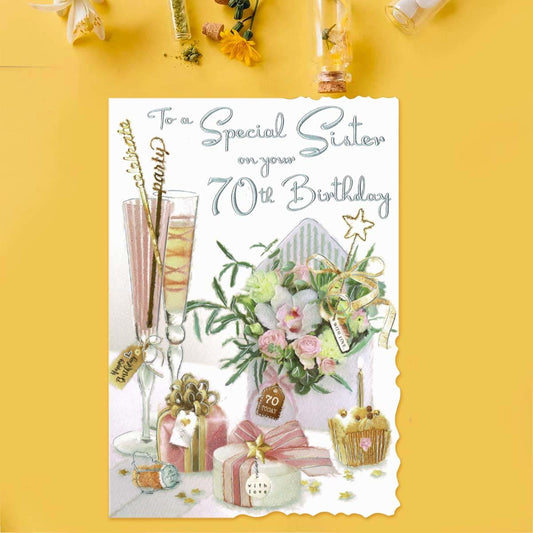 Sister 70th Birthday Card - Velvet Envelope Of Flowers