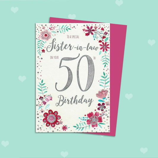 Sister-In-Law 50th Birthday Card - Floral Border