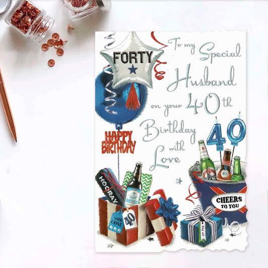 Husband 40th Birthday Card - Velvet Beers & Cheers