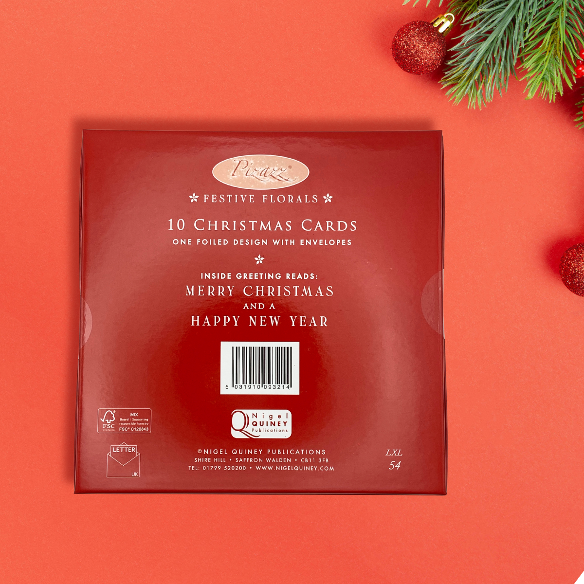 10 x Christmas Cards In Box - Festive Florals Seasons Greetings
