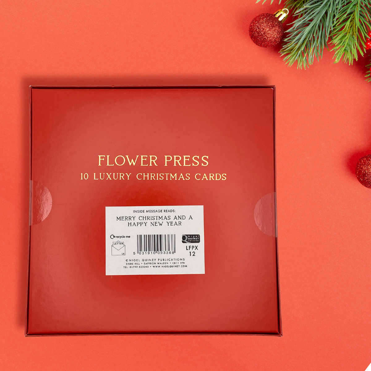 10 x Christmas Cards In Box - Flower Press Poinsettias & Robin