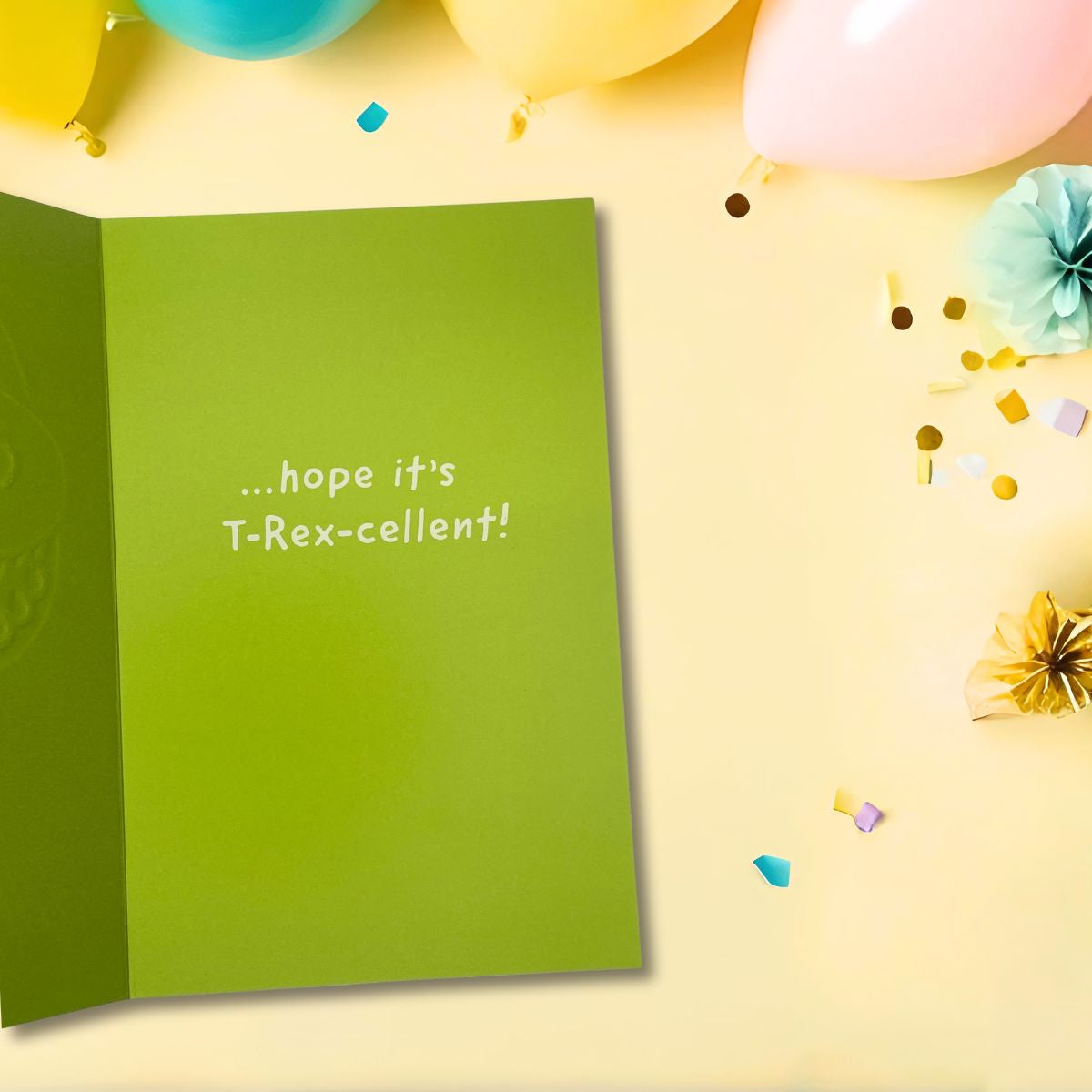 Fabulous Age 4 Dinosaur Birthday card finished with vibrant colour inside.