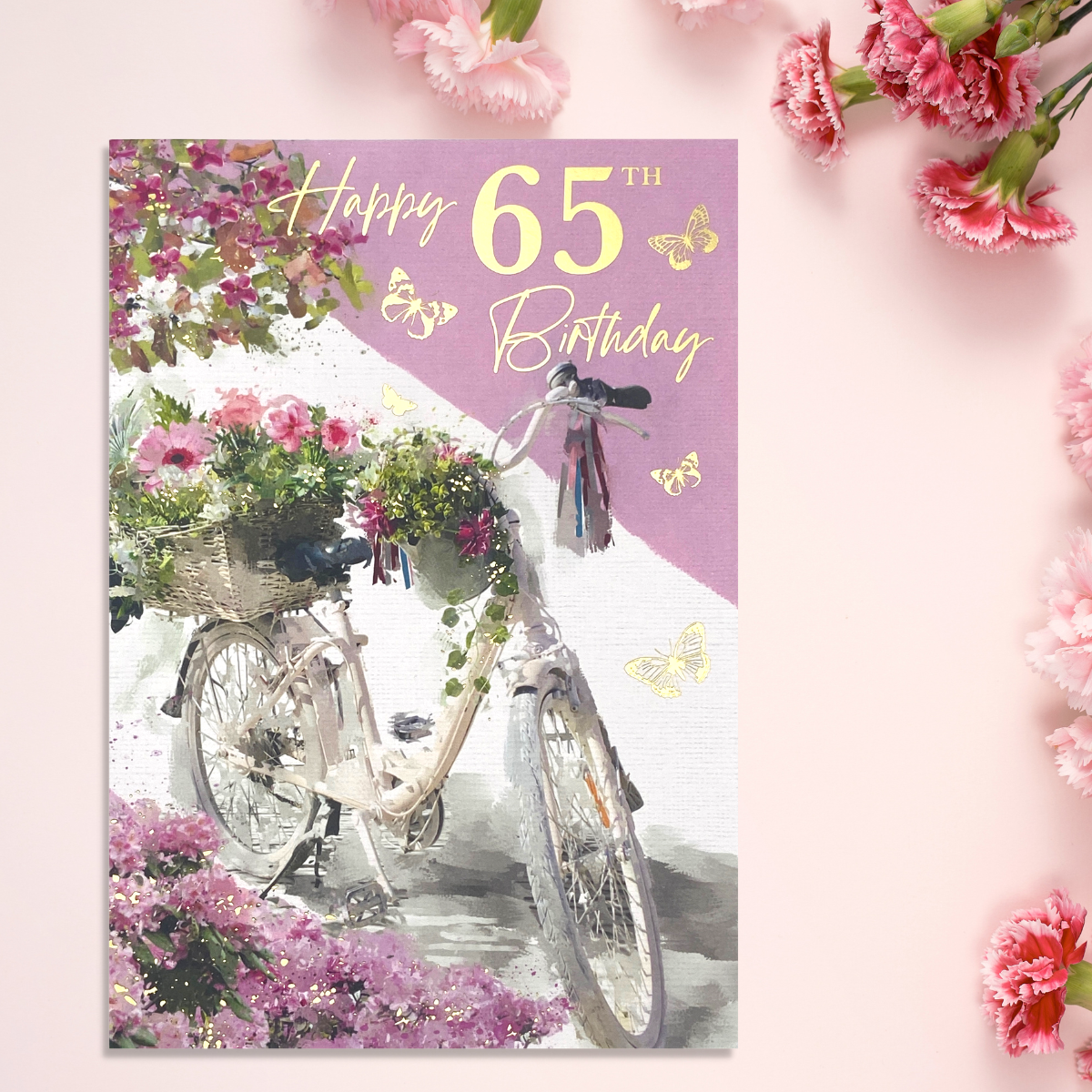 Stunning, full colour Age 65 Birthday card with gold foil details and colour print inside.