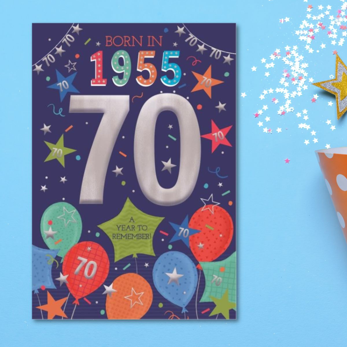 70th Birthday Card - Born In 1955 A Year To Remember! Blue