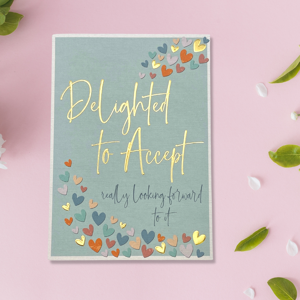 Beautiful coloured Acceptance complete with gold foiled detail and multicolour hearts.