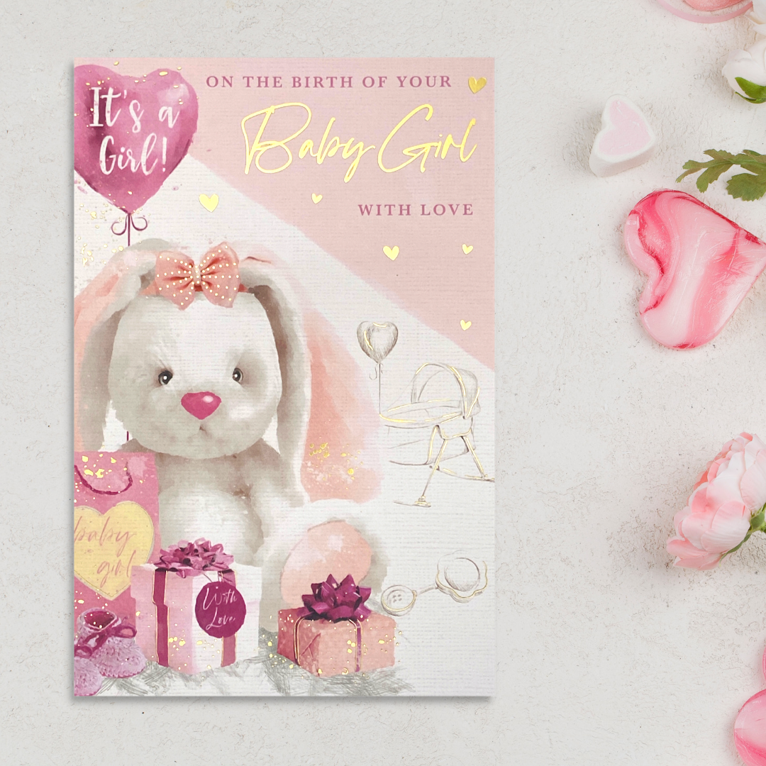 Fabulous full colour Baby Girl card from the Heritage collection with textured effect and gold foil accents. Finished with gorgeous colour printed inside.