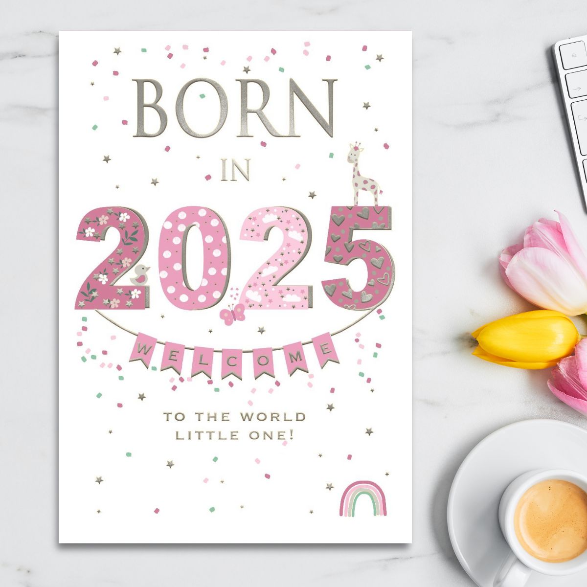 Baby Girl Card - Born In 2025 Pink