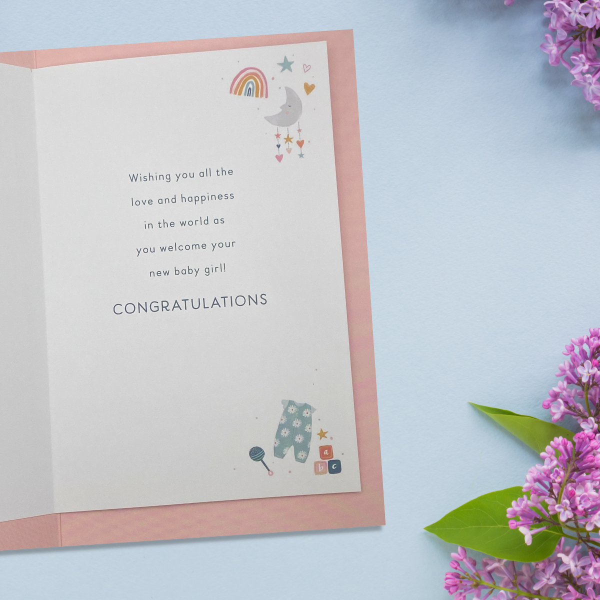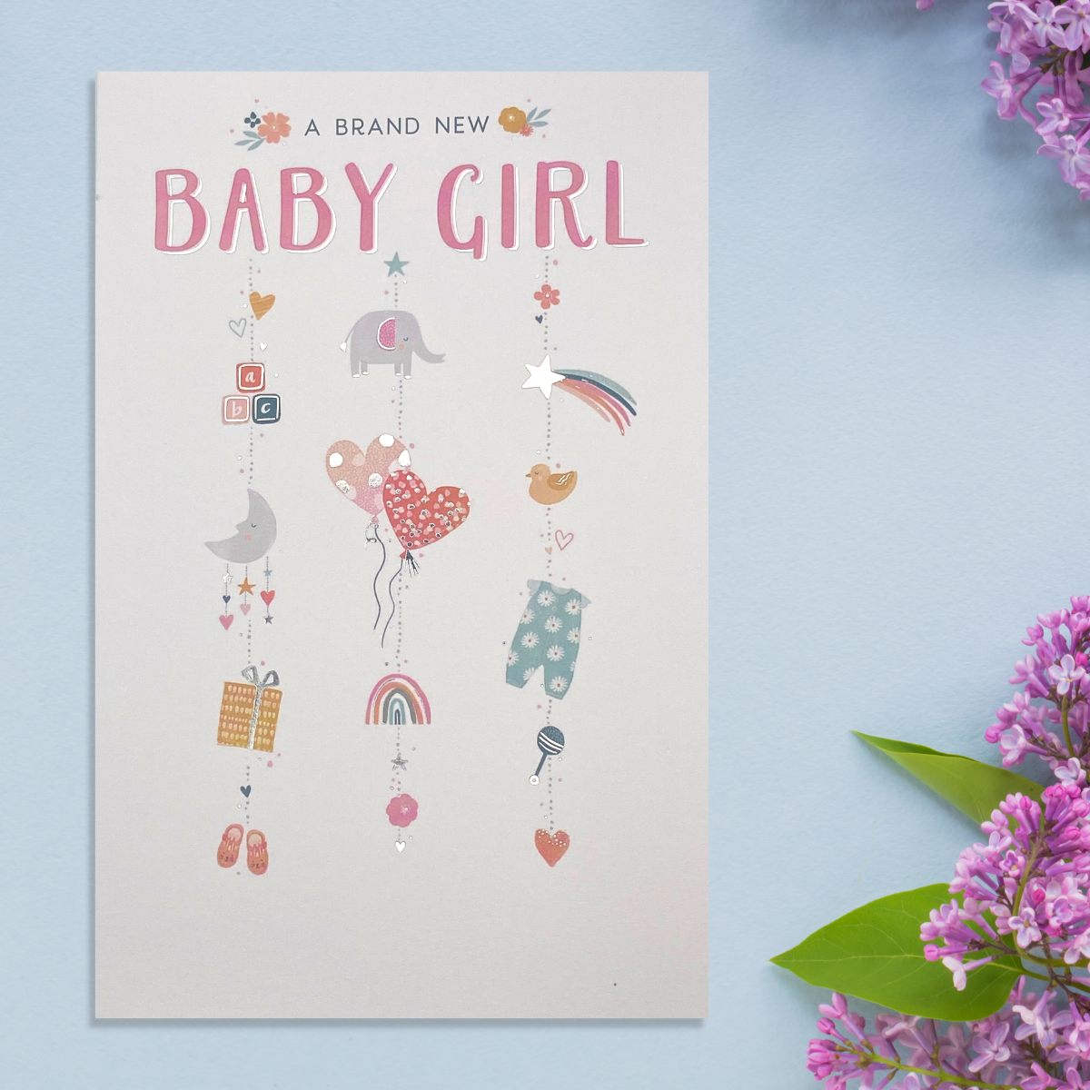 Fantastic full colour Baby Girl card from the Simply Precious collection with beautiful cerise foil accents and colour printed insert.