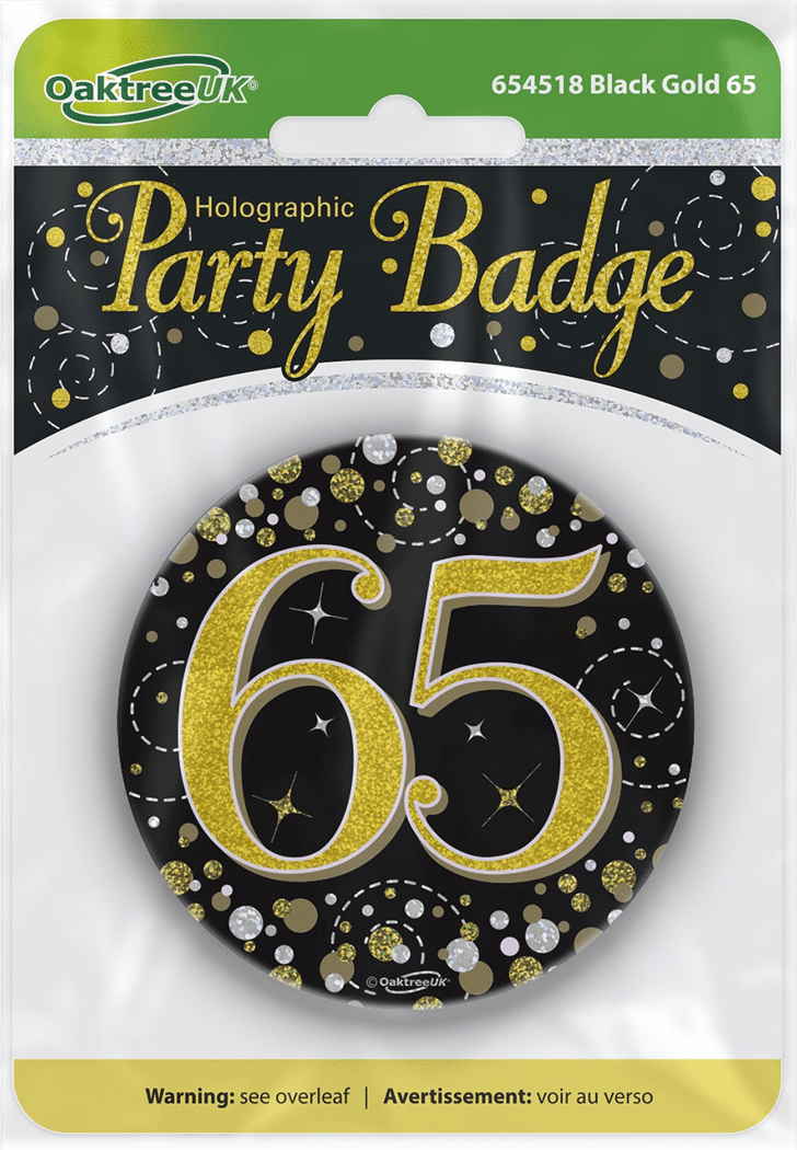 Birthday Badge 3 inch - 65 Today Black & Gold Sparkling Fizz