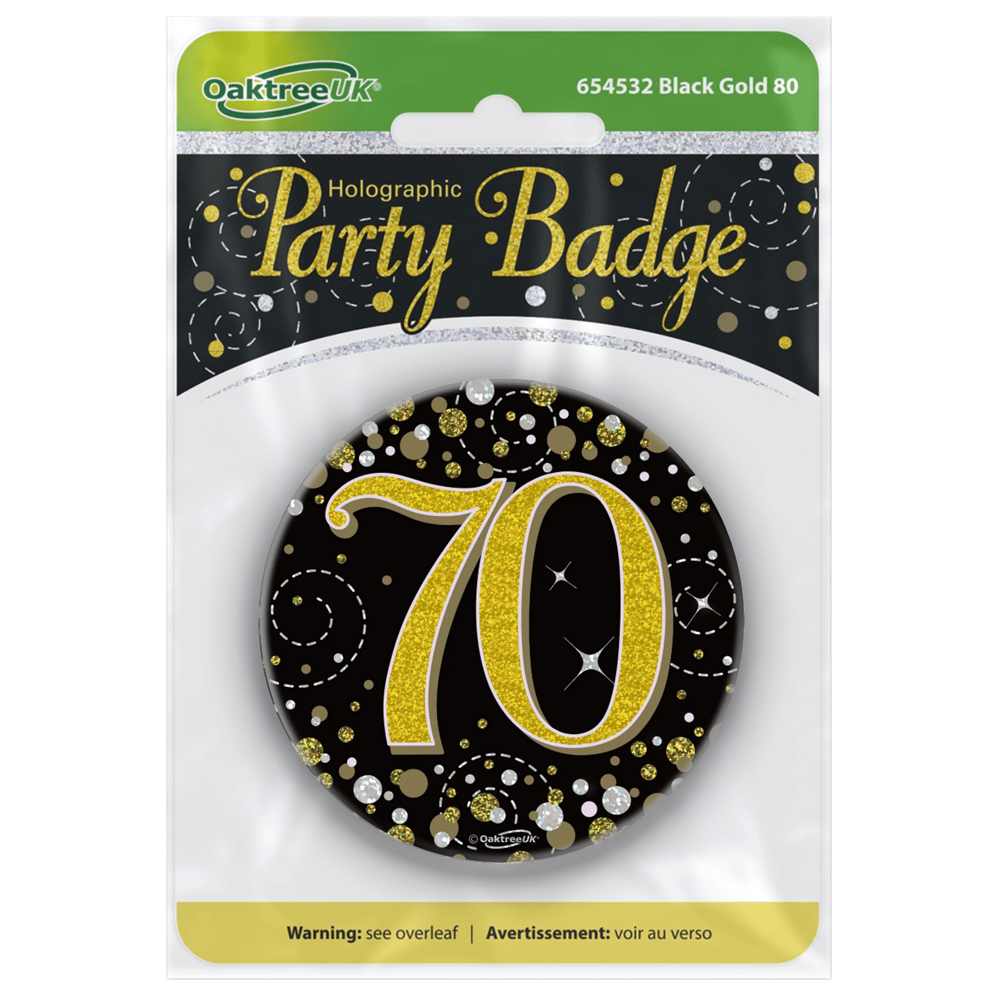 Birthday Badge 3 inch - 70 Today Black & Gold Sparkling Fizz