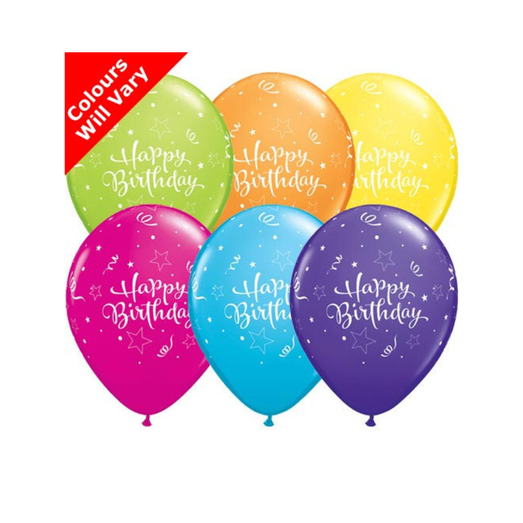 Qualatex Balloons - 6 x Multicolour Happy Birthday Latex