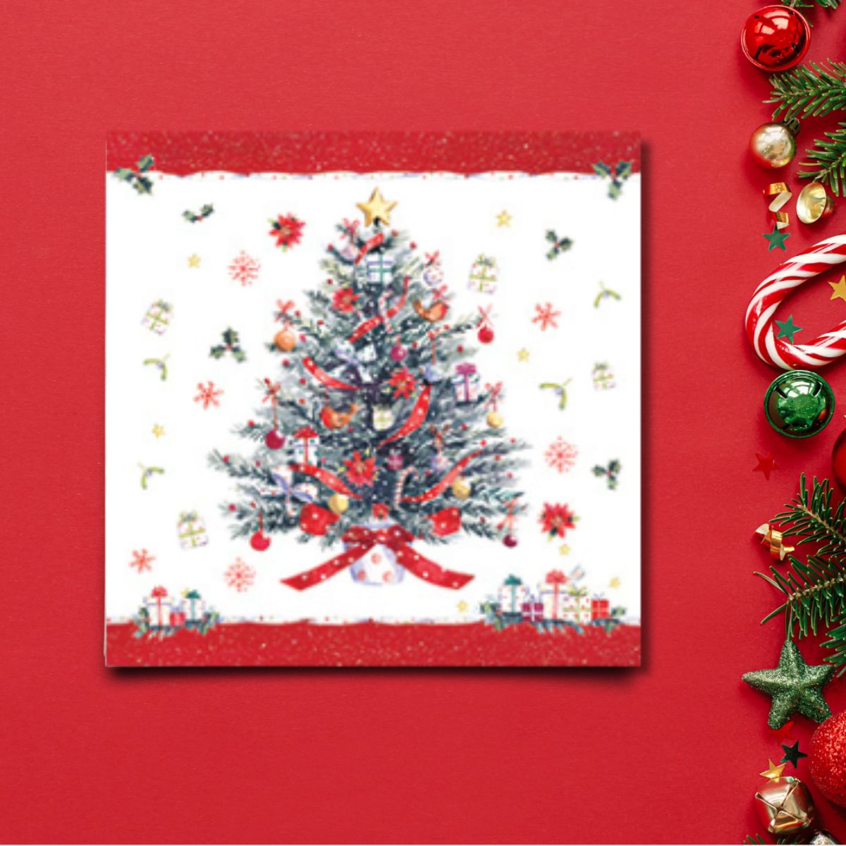 Fabulous Charity Christmas card pack by Noel Tatt featuring an illustrated Christmas Tree. Eco-friendly, plastic free packaging.