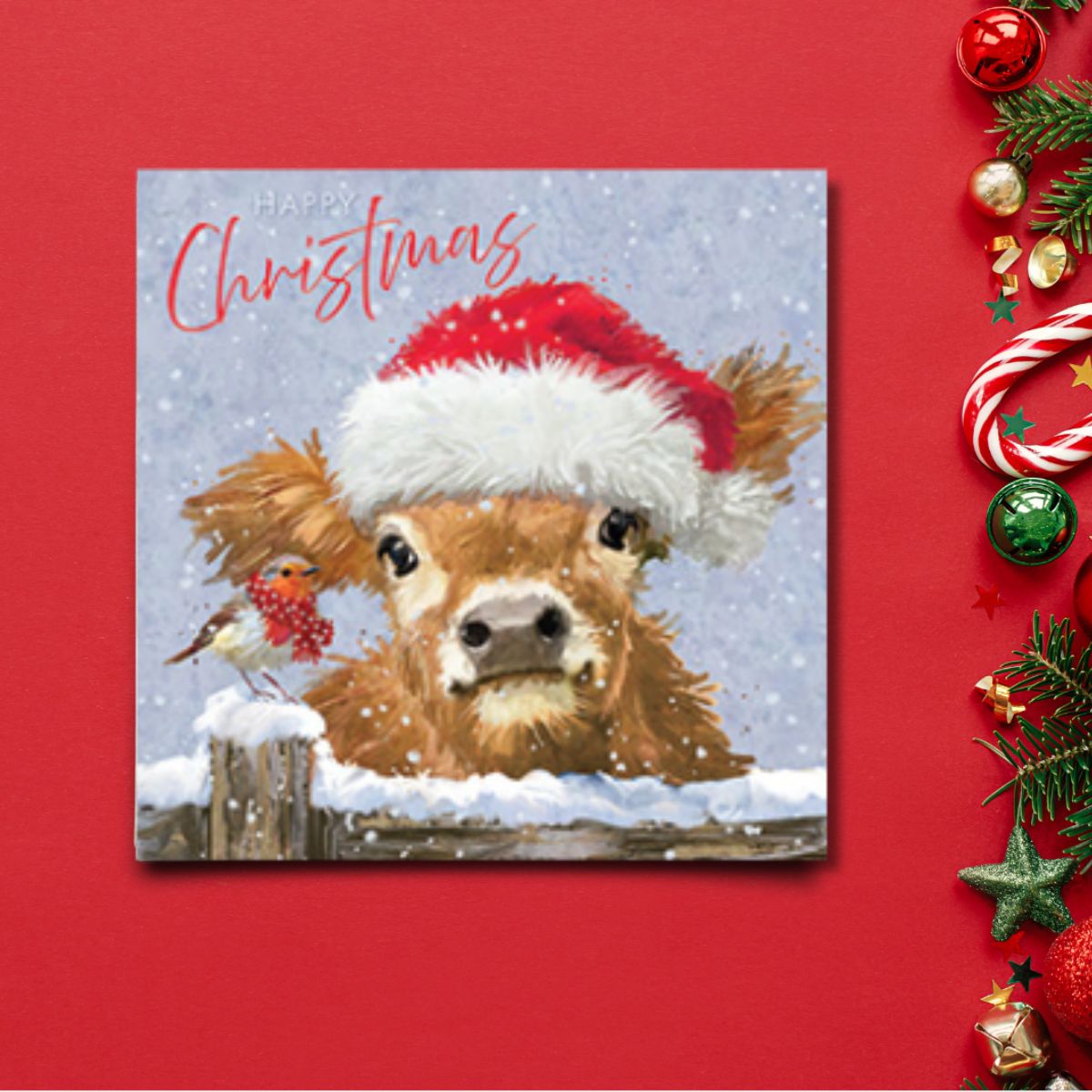 Charity Christmas Cards - 6 x Festive Cow & Red Robin