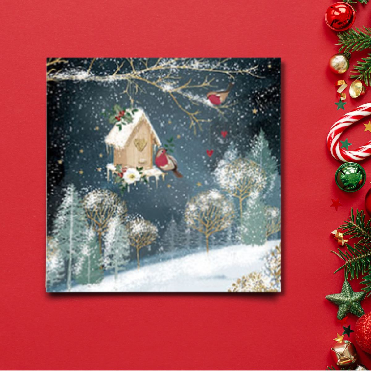 Charity Christmas Cards - 6 x Snowy Birdhouse