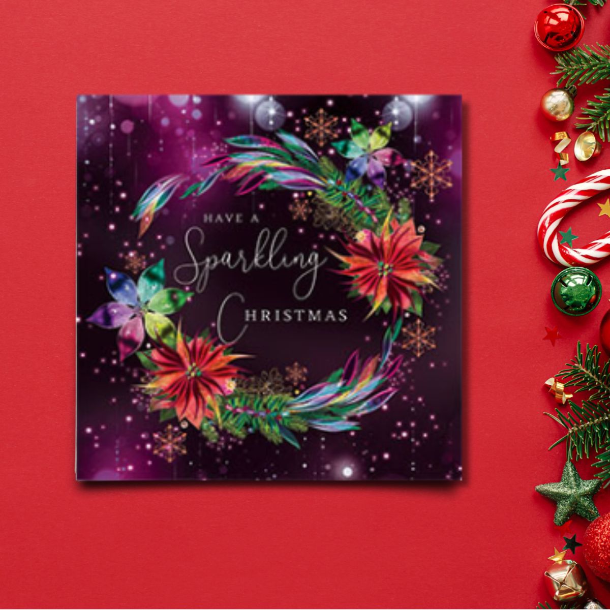 Fabulous Charity Christmas card pack by Noel Tatt featuring a colourful Christmas wreath. Eco-friendly, plastic free packaging.