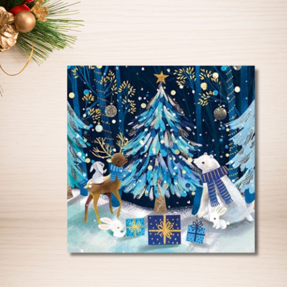 Fabulous Charity Christmas card pack by Noel Tatt featuring animals all around the Christmas tree. Eco-friendly, plastic free packaging.