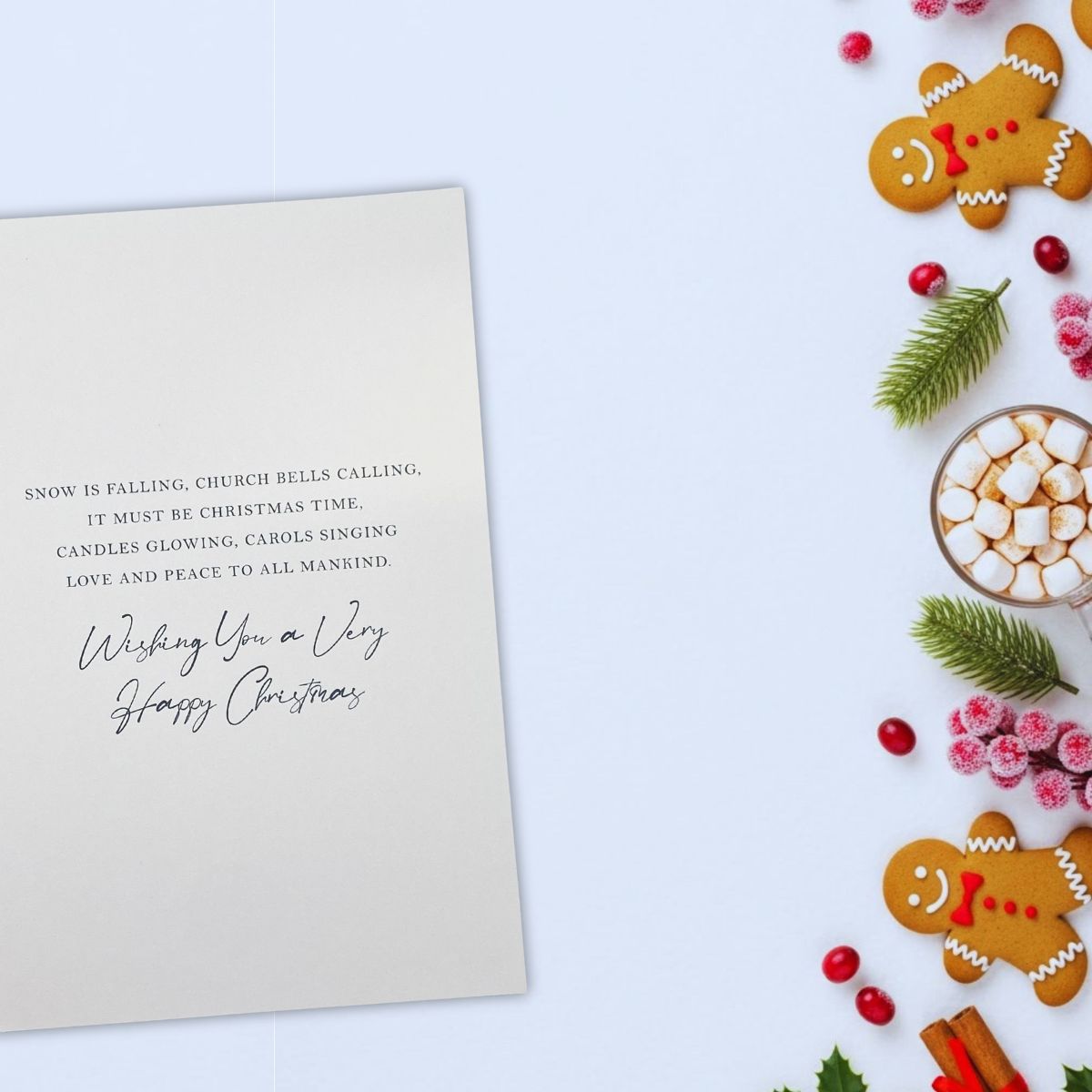 Fabulous full colour Christmas card with gold foil details and colour printed inside.