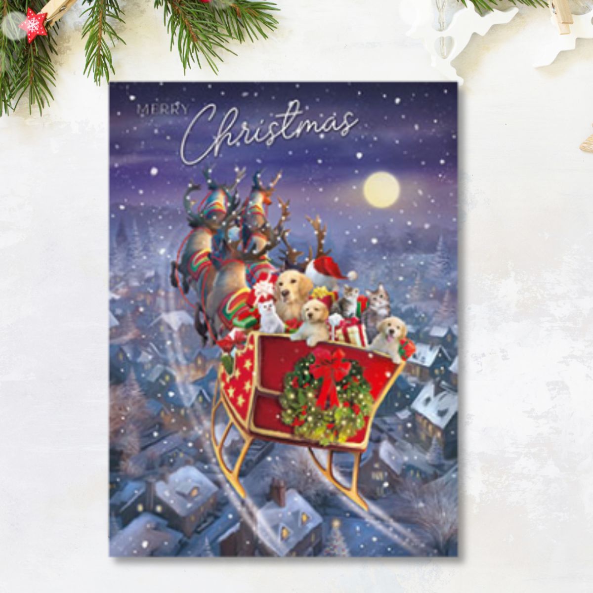 Christmas Charity Cards - 8 x Christmas Sleigh Puppies