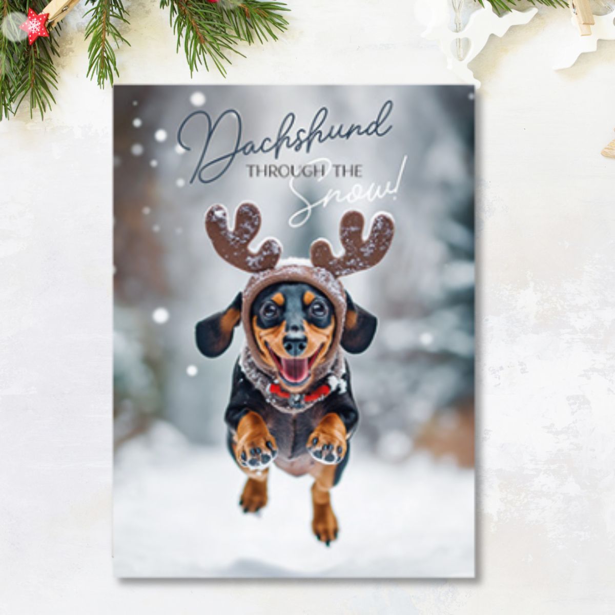 Christmas Charity Cards - 8 x Dachshund Through The Snow