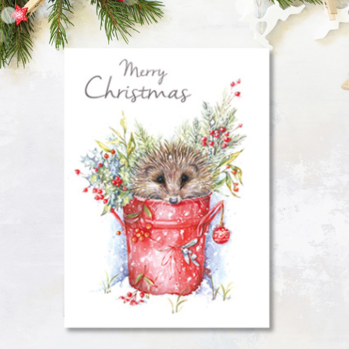 Christmas Charity Cards - 8 x Hedgehog & Holly