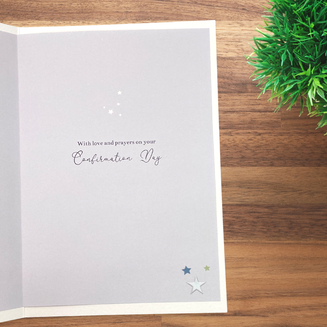 Beautiful Grandson on your Confirmation Day card from the Pretty In Peach collection. Complete with silver foil details, textured effect and colour printed insert.