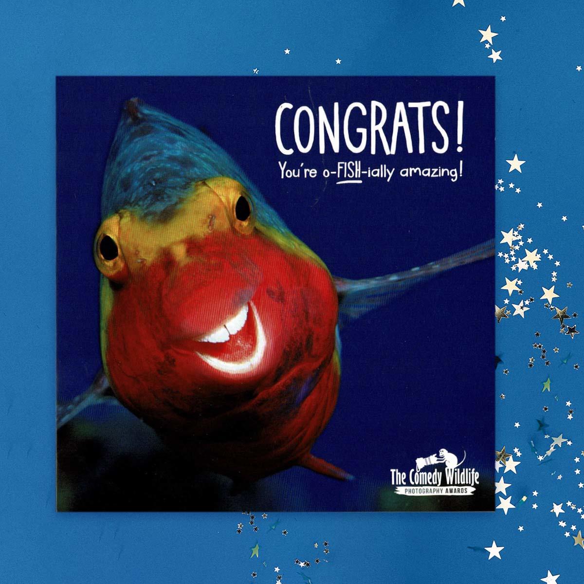 Fantastic fish themed Congratulations card from The Comedy Wildlife Photography Awards supporting the Born Free foundation.
