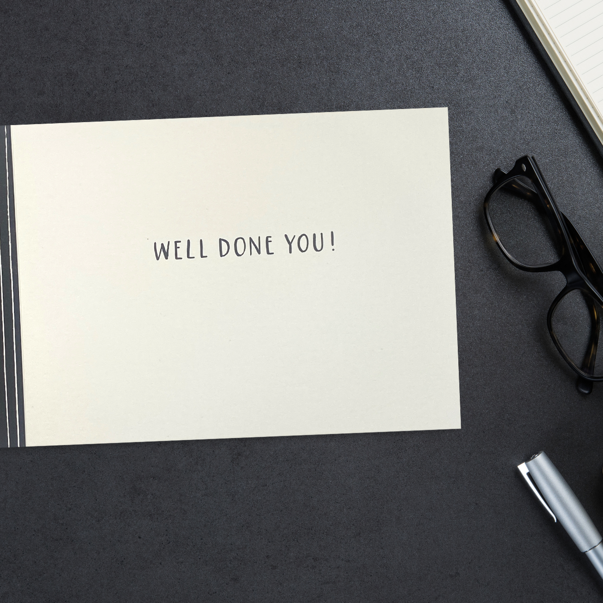 Fabulous small Well Done card from the Kindred collection with textured finish and colour printed inside.