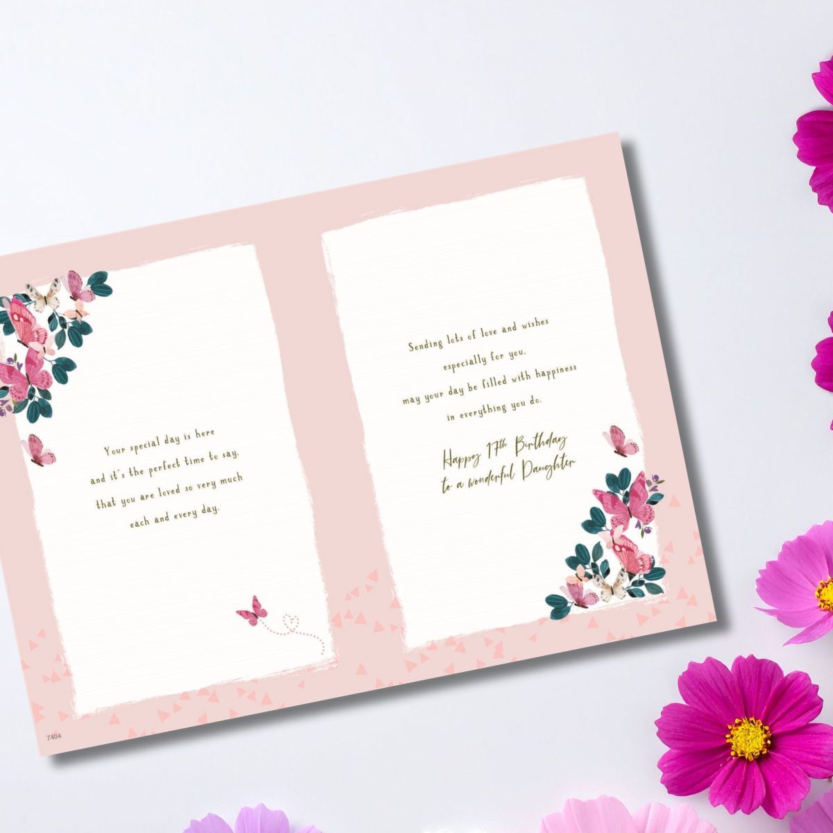 Stunning full colour Daughter 17th Birthday card complete with pink foil and colour printed insert.