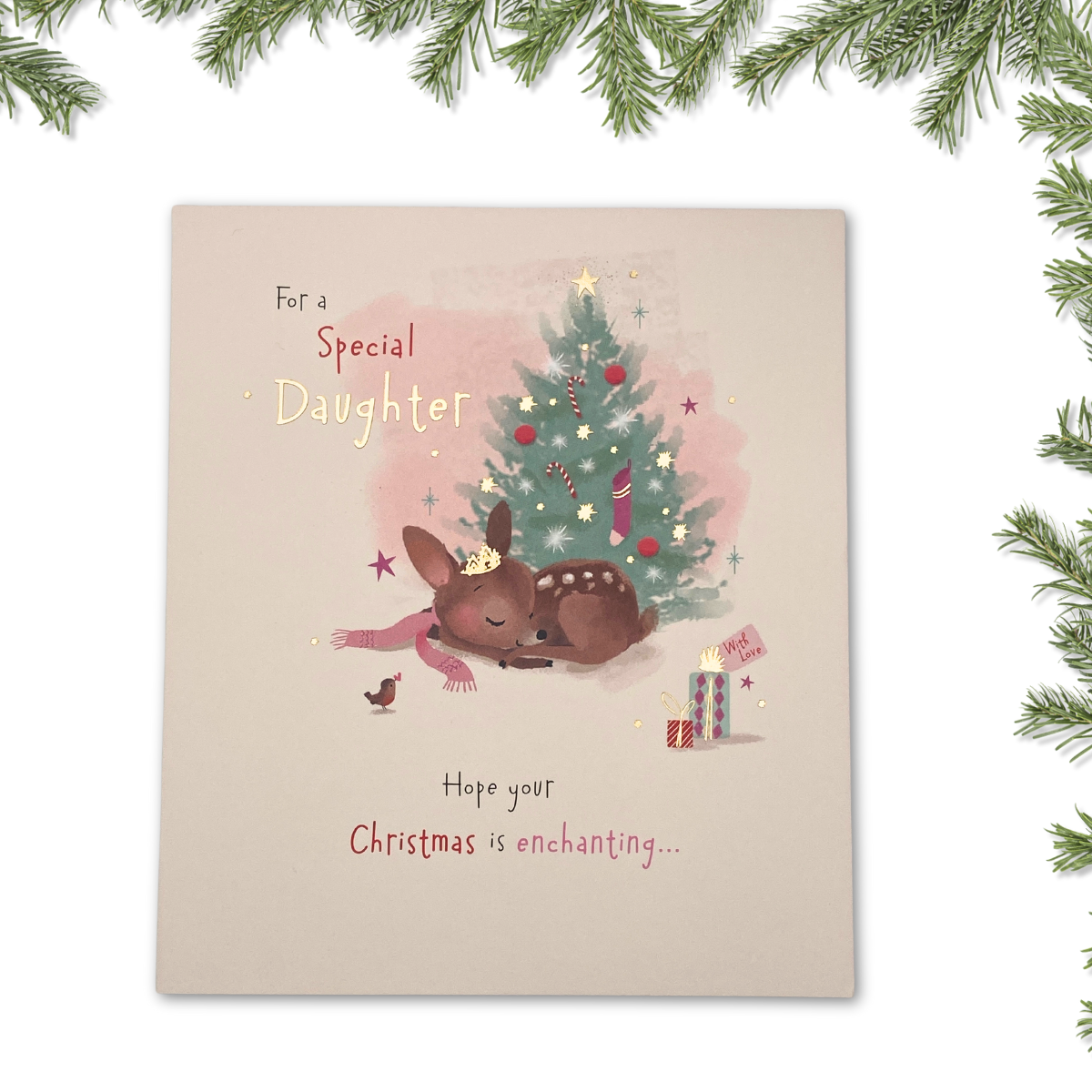 Stunning full colour Daughter Christmas card with gold foiled accents and colour printed inside.