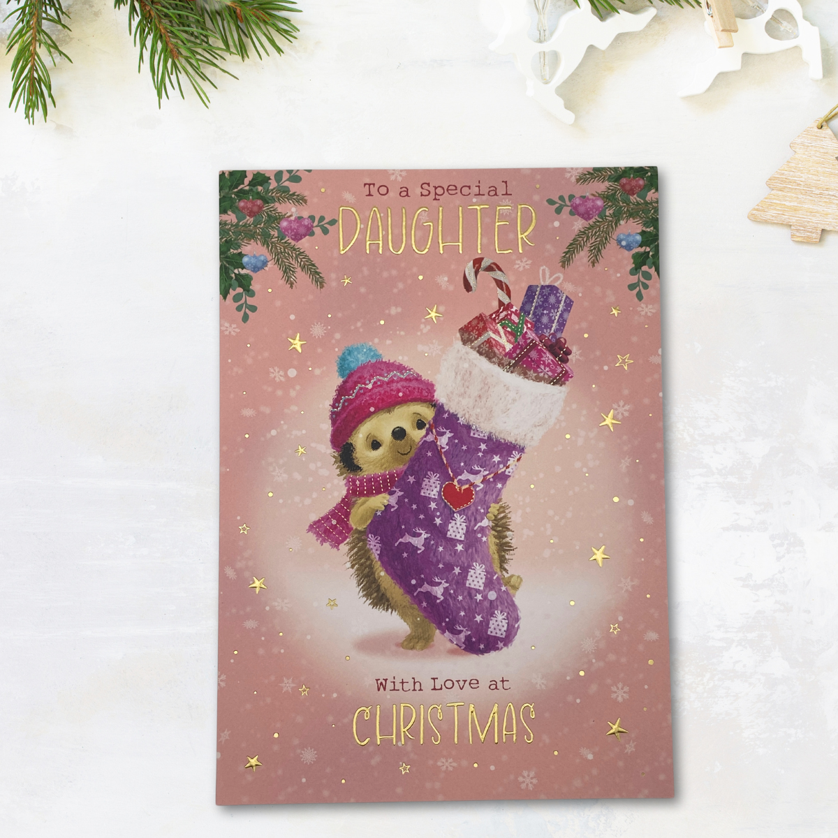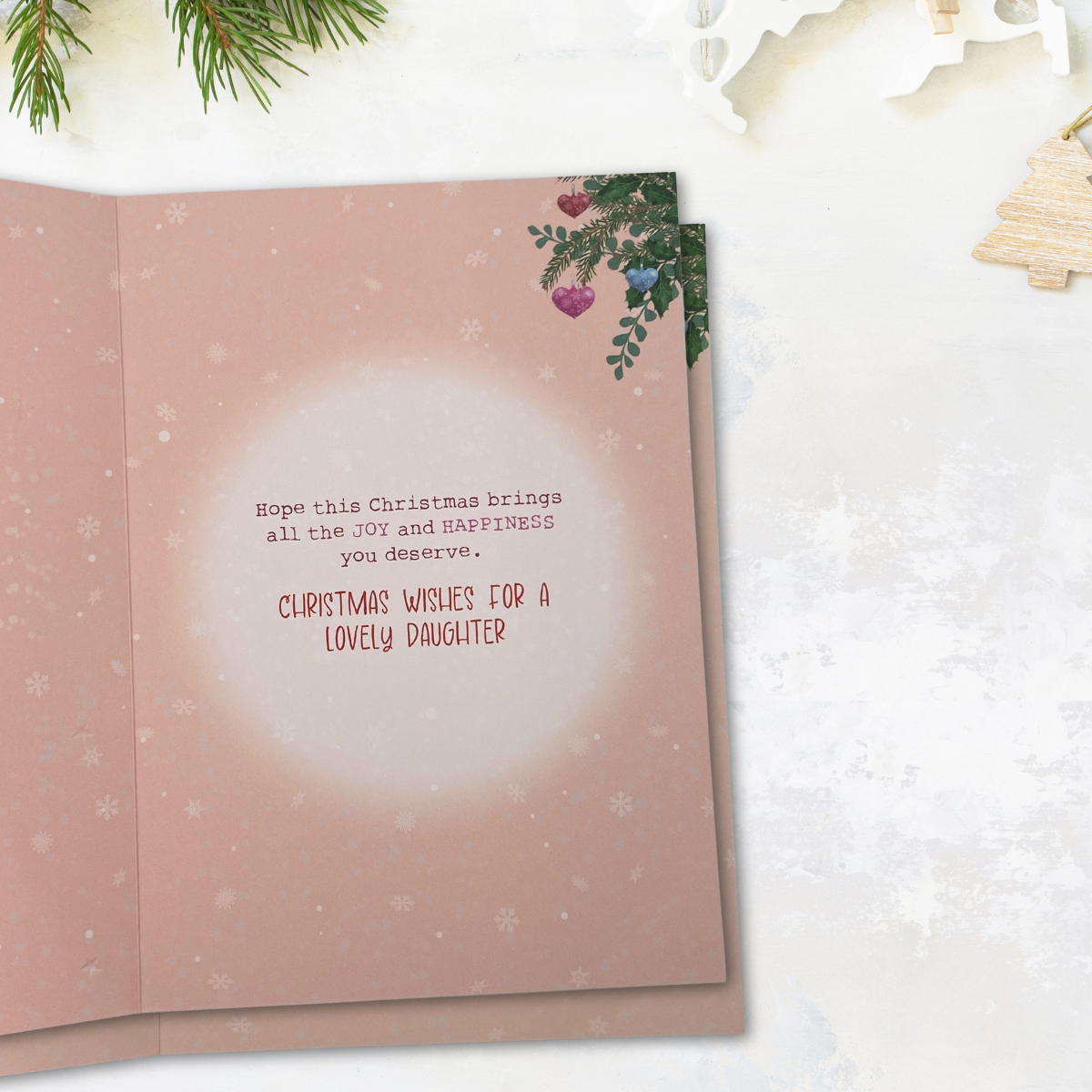 Fabulous Christmas card for a Daughter, with gold foil details and pretty colour printed inside.