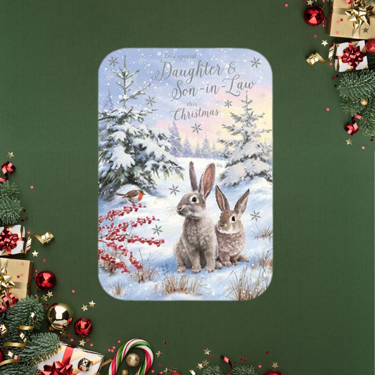 Daughter & Son-In-Law Christmas Card - Snow Bunnies