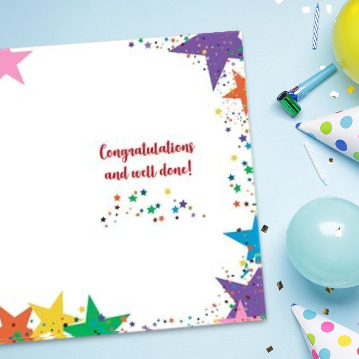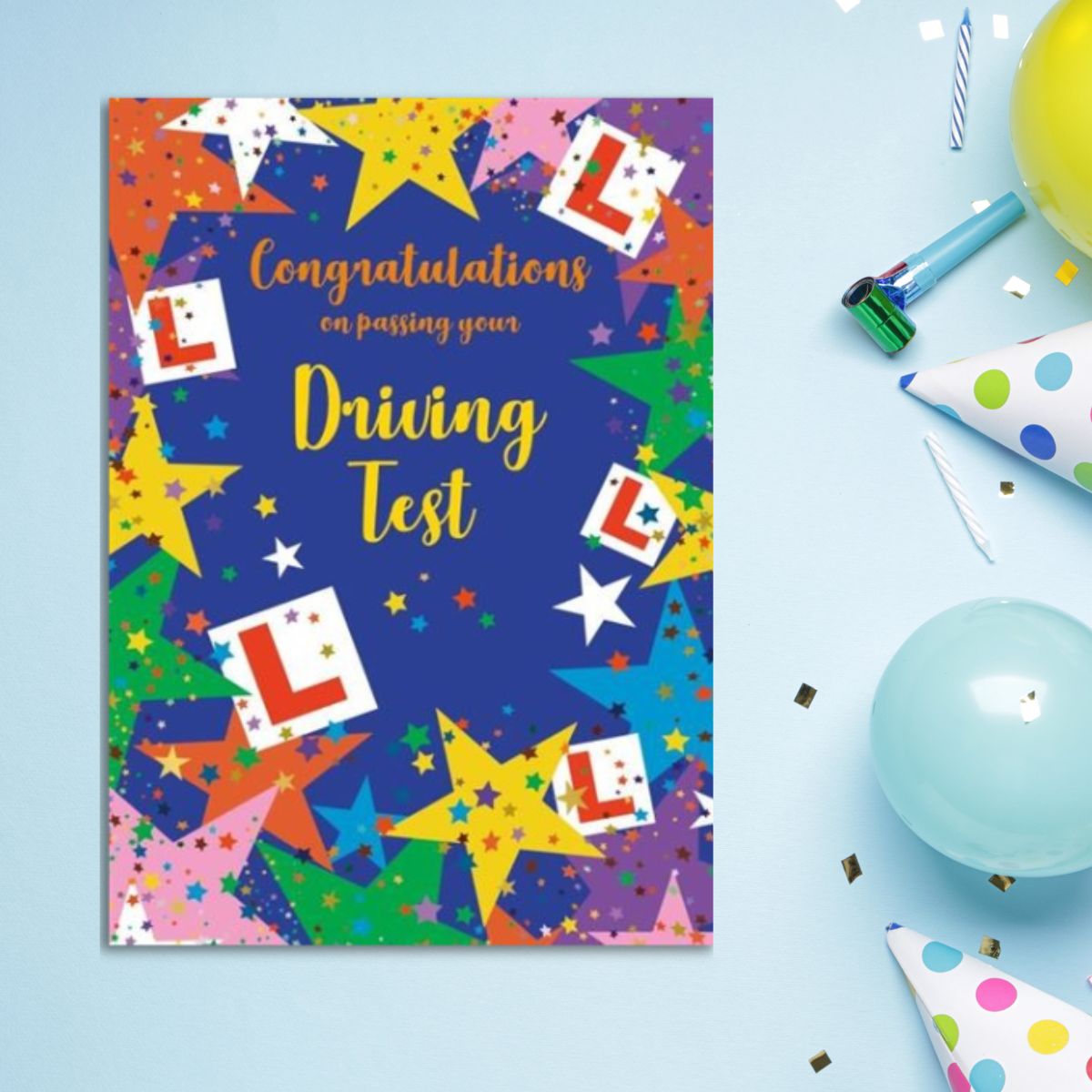 Fantastic Driving Test Pass card with brightly coloured printed insert.