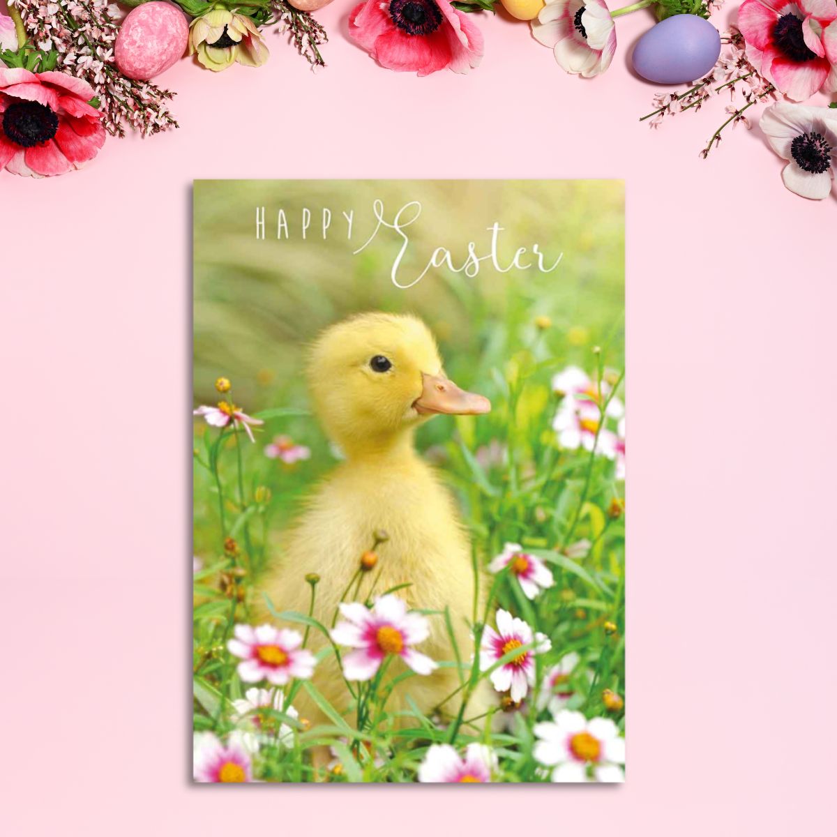 Easter Cards - Cute Duckling & Flowers Pack Of 4 Cards