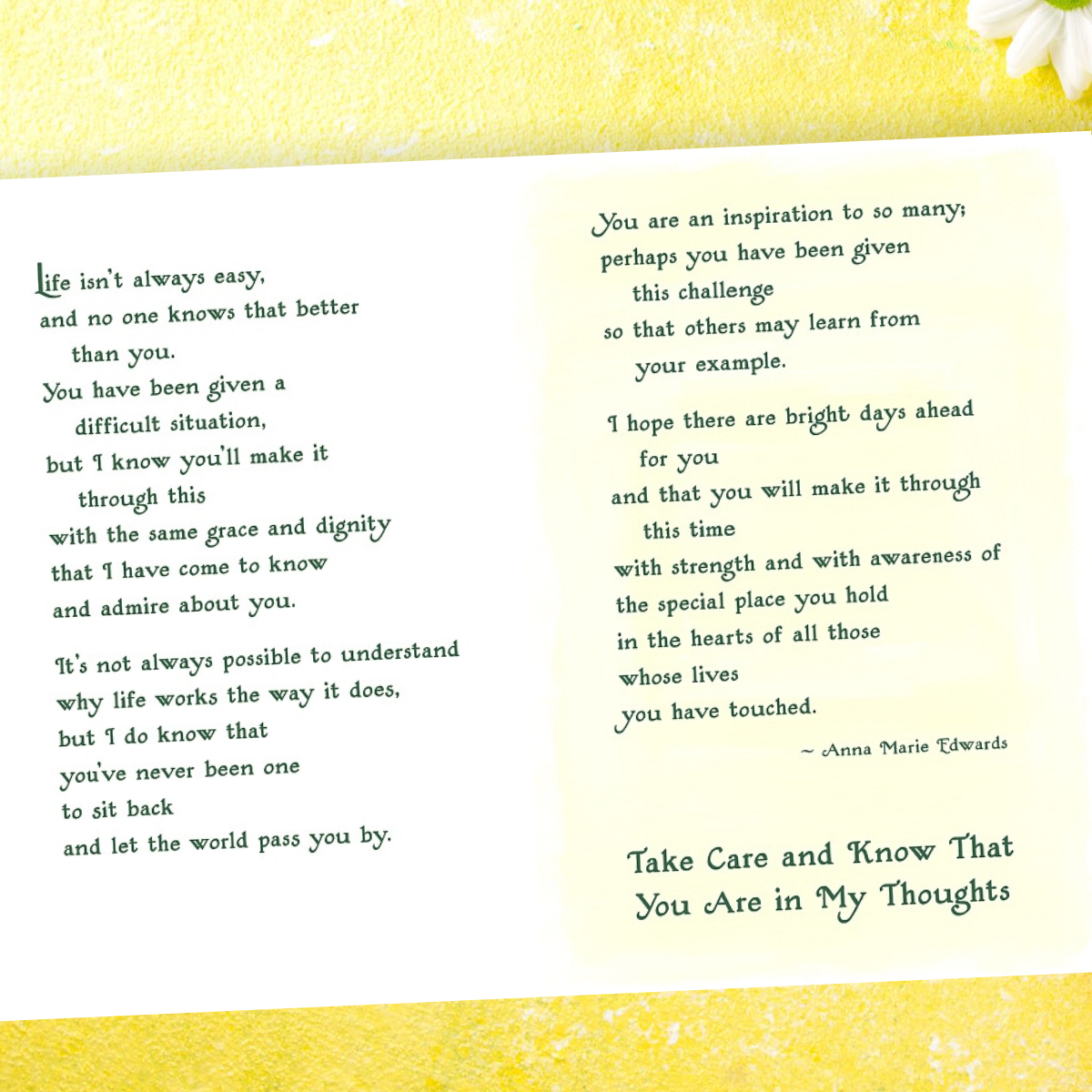 Beautiful full colour 3-Fold Feel Better Soon card from the Blue Mountain Arts collection with heartfelt sentiments. With die-cut edge and textured finish.
