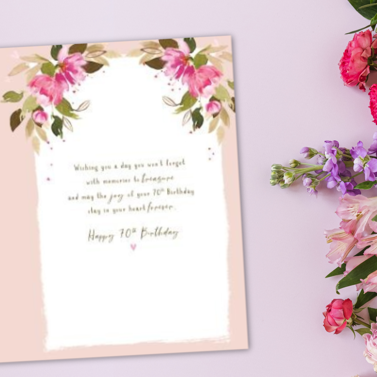 Friend 70th Birthday Card - Skylight Flowers & Hearts