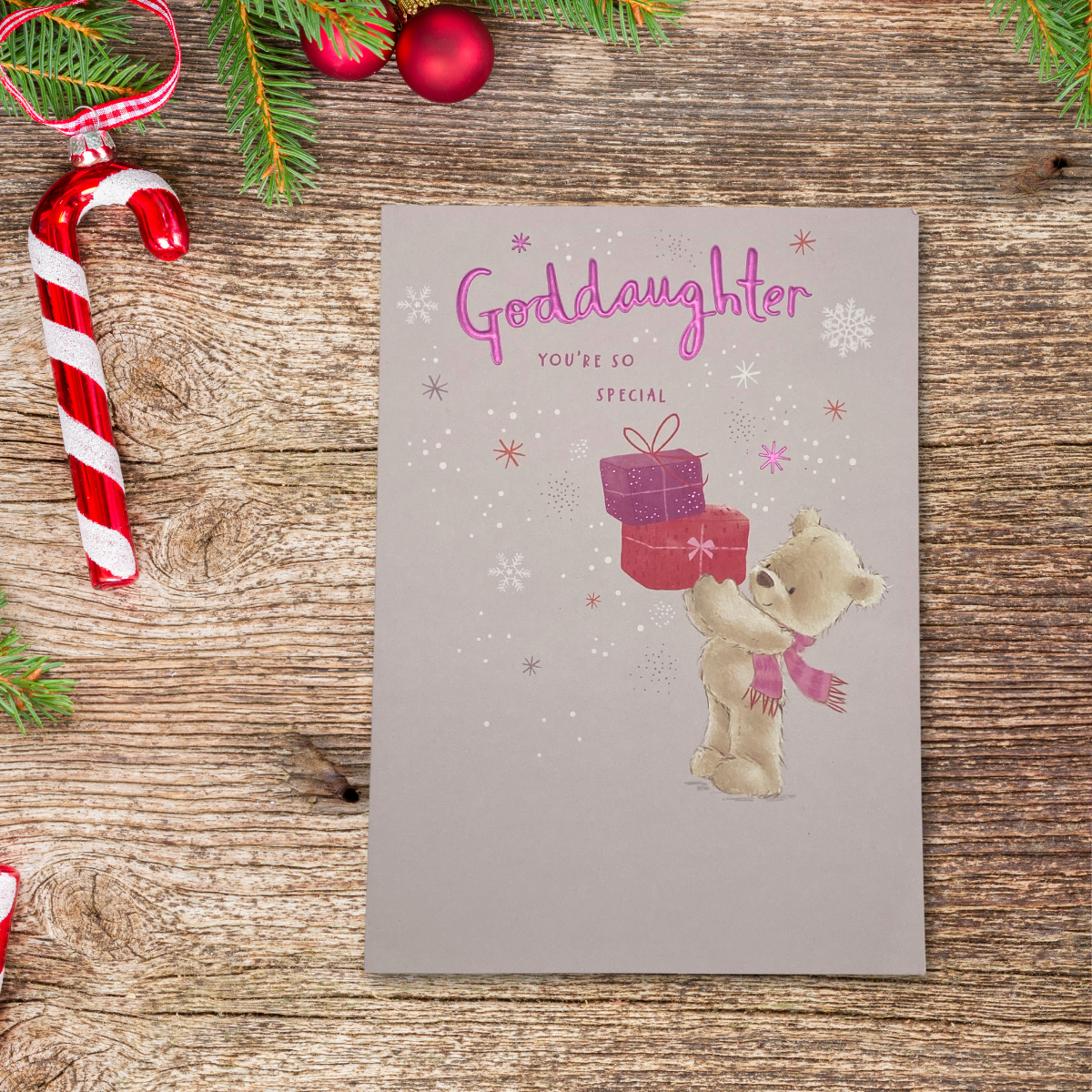 Goddaughter Christmas Card - Nutmeg Bear & Gift