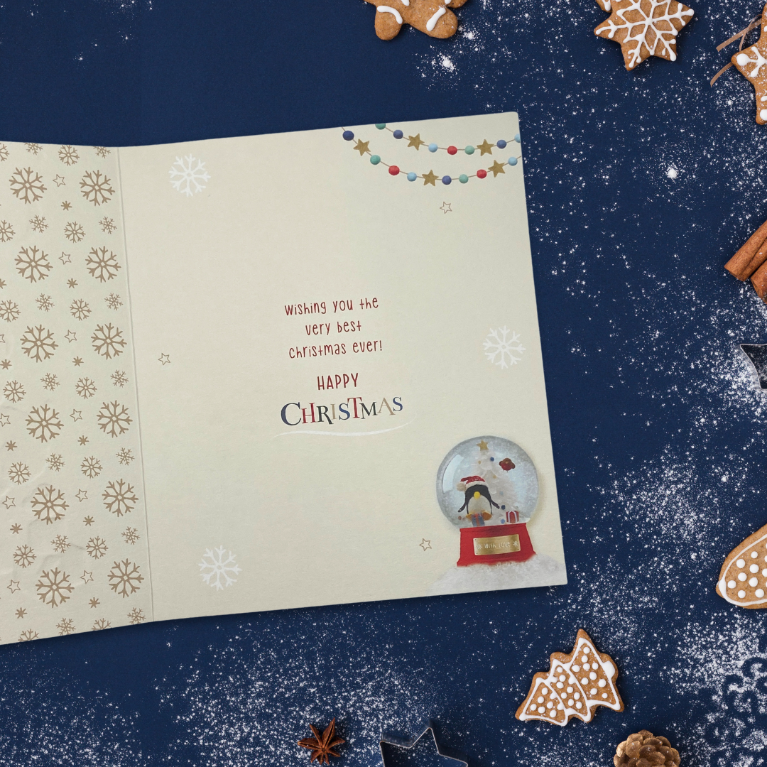 Godson Christmas Card - Barley Bear & Snowglobe