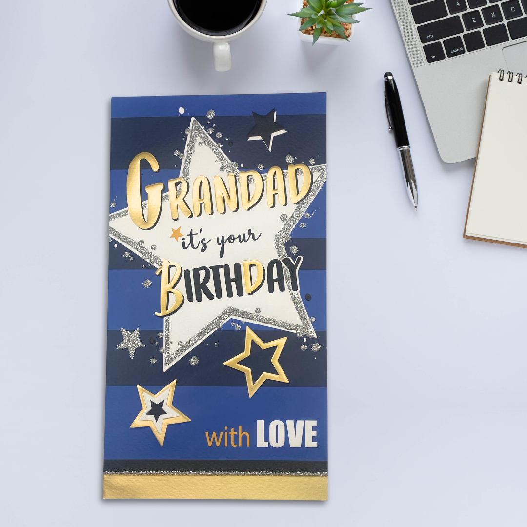 Fantastic Grandad Birthday card from the Signature collection complete with gold & silver foil details and colour printed insert.
