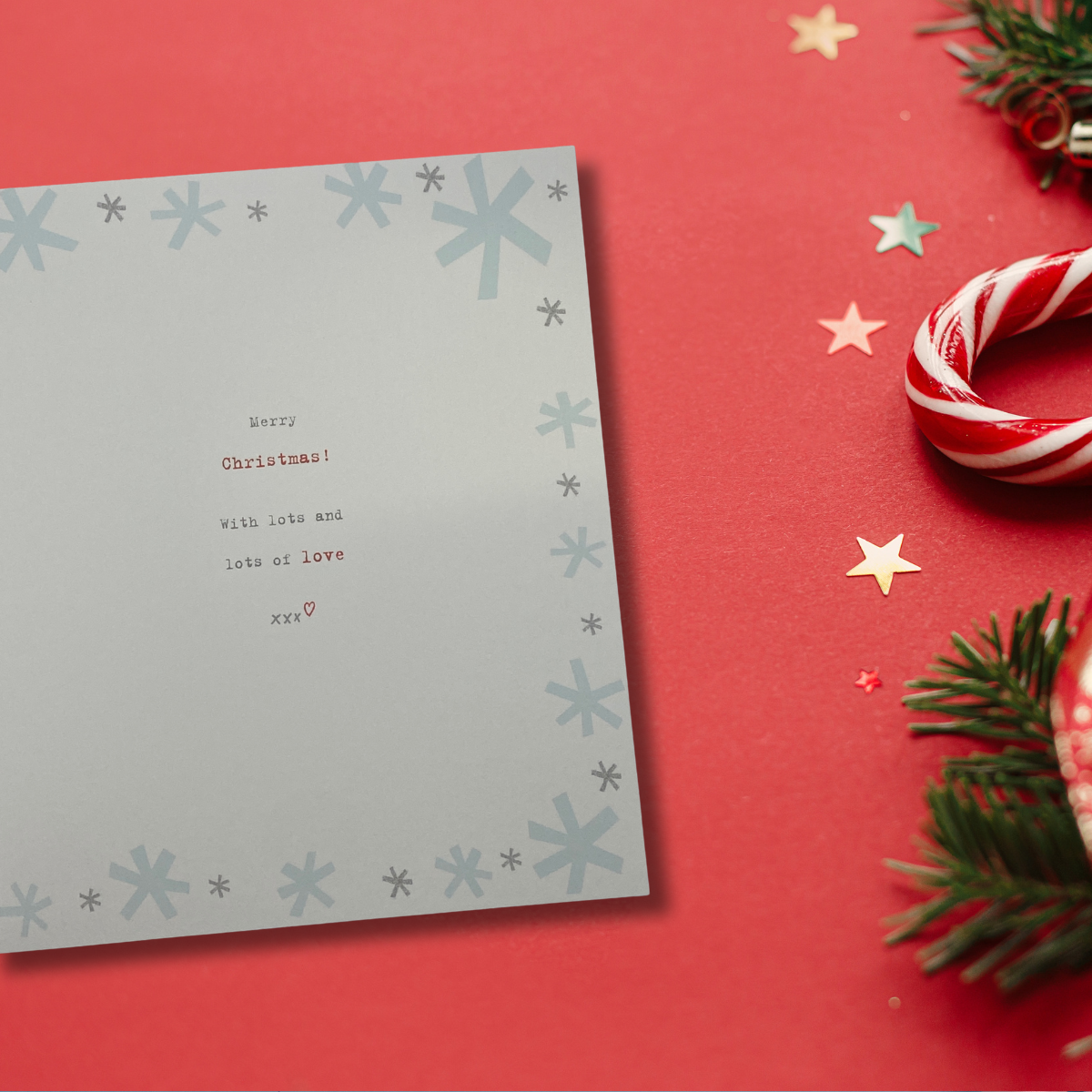 Gorgeous textured Grandad Christmas card from the Boofle Bear collection with silver foil details and the prettiest colour printed inside.