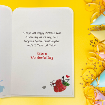 Stunning full colour Granddaughter Age 5 Birthday card from the Twingles collection with embossed lettering and printed insert.