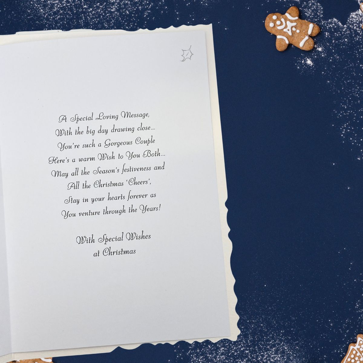 Fabulous full colour Granddaughter & Her Fiancé Christmas card from the Velvet collection. Finished with silver foil accents, added sparkle and colour printed insert.