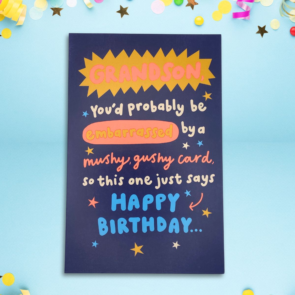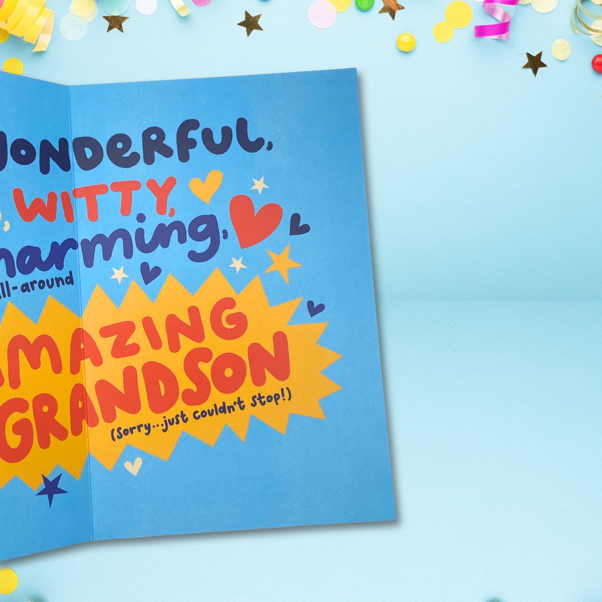 Fabulous neon Grandson birthday design complete with colour printed inside.