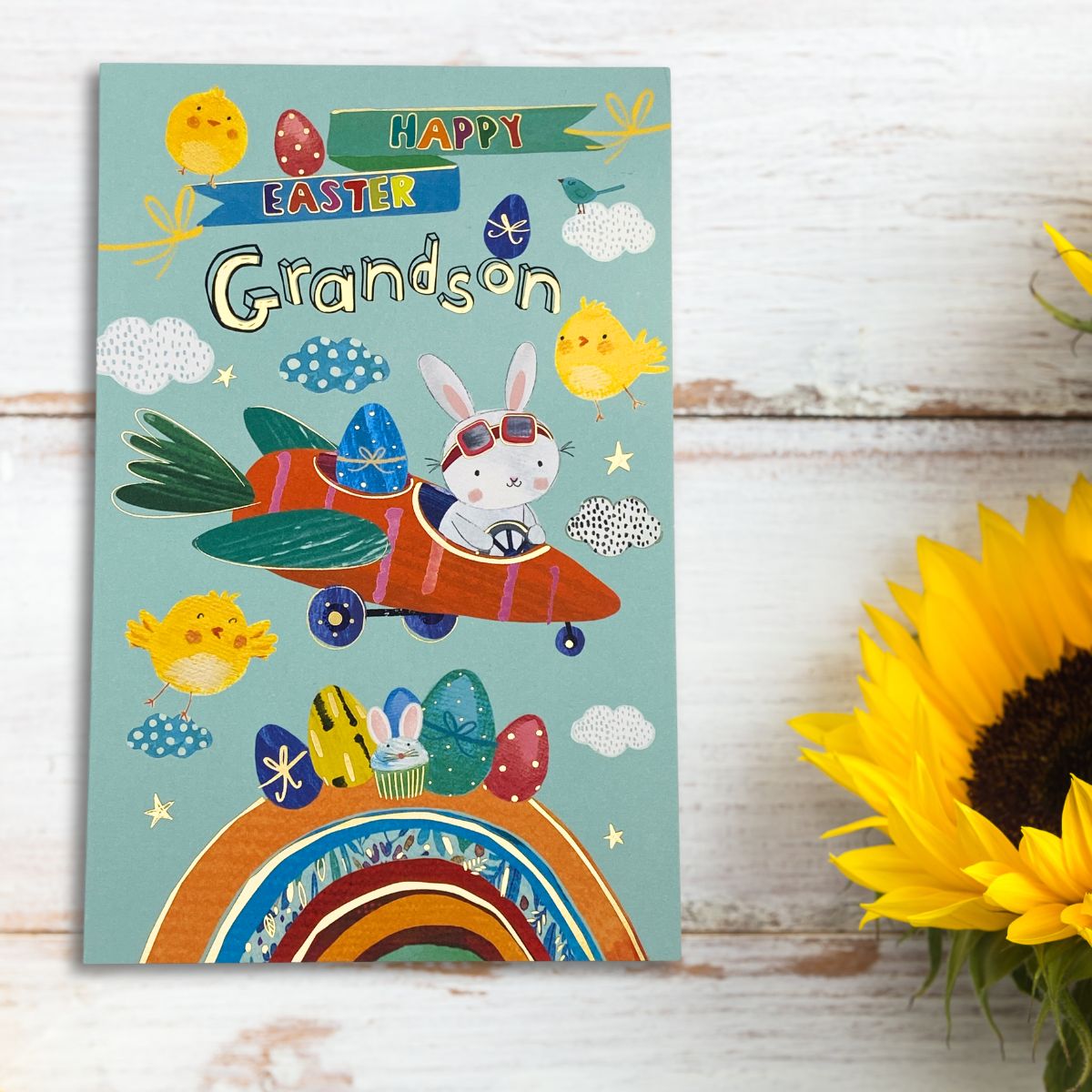 Fantastic full colour Easter Grandson card with gold foiling accents and colour printed inside.