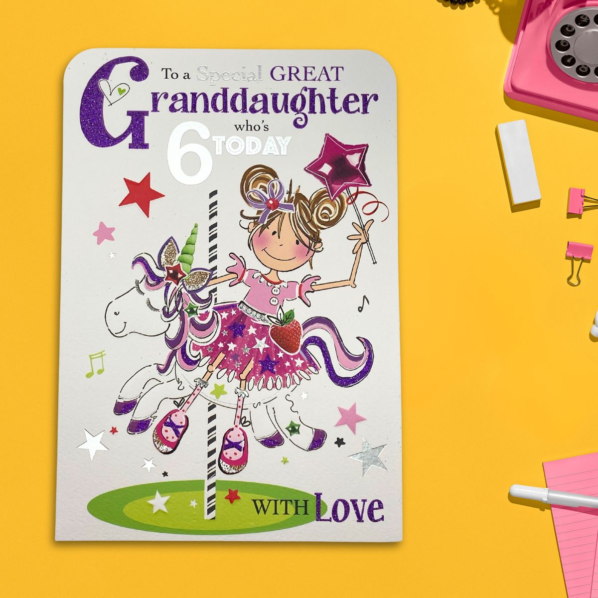 Great Granddaughter 6th Birthday Card - Twingles Carousel