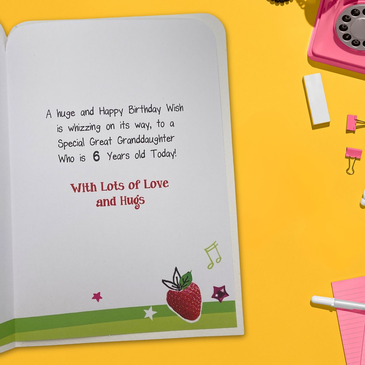 Stunning full colour Great Granddaughter Age 6 Birthday card from the Twingles collection complete with embossed lettering and printed insert.