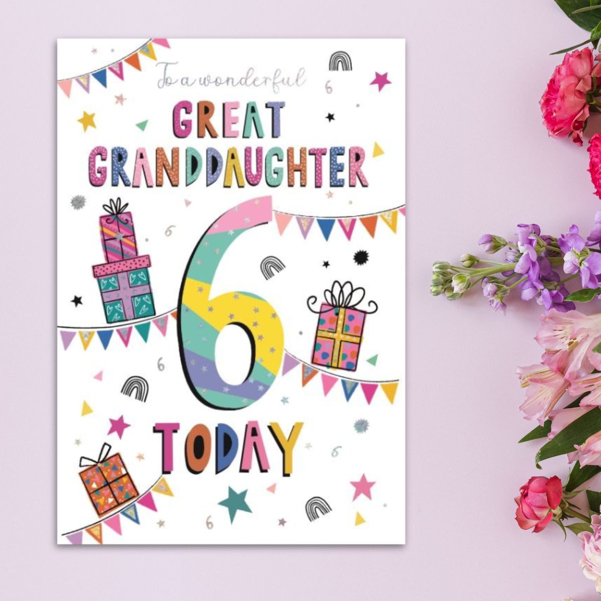 Great Granddaughter 6th Birthday Card - Wonderful Wishes Gifts