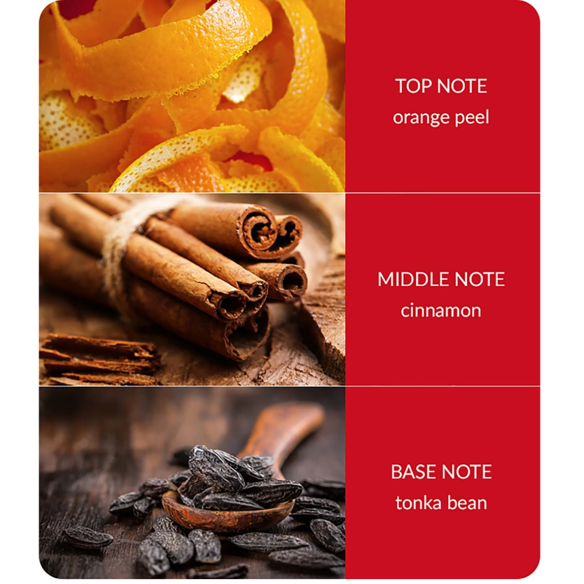 - Christmas Magic wax melt is a comforting fragrance with orange peel, cinnamon and tonka bean.