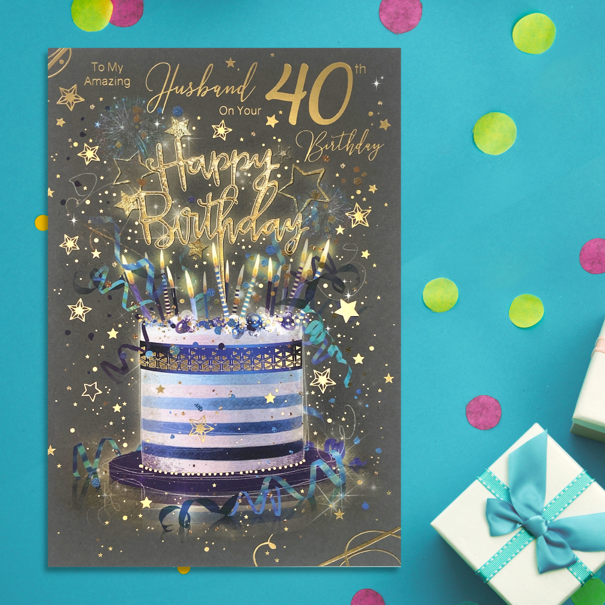 Husband 40th Birthday Card - Grayson Cake & Candles Large