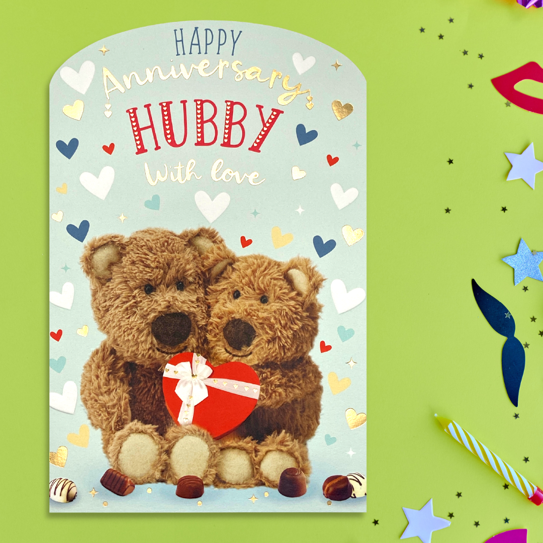 Husband Anniversary Card - Hubby Barley Bear Hearts